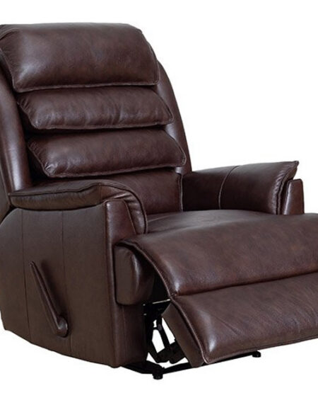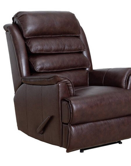 Big Comfort is found in this high back handle controlled wall proximity recliner with 46″ 4 tier semi-attached zippered back, tucked pillow arms, t-cushion pad over chaise seating with pocketed coil springs. Perfect for the taller person in your home.