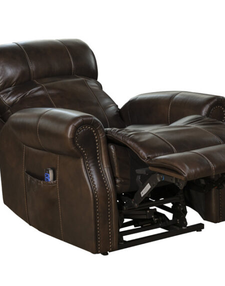 Dual motor lay flat power recliner with power headrest, power lumbar and hidden power lift. Easy to read and use hand controller with home close button. Lay flat back and ottoman reclining functions adjust separately so you can choose the exact position you prefer. The lift function is there only