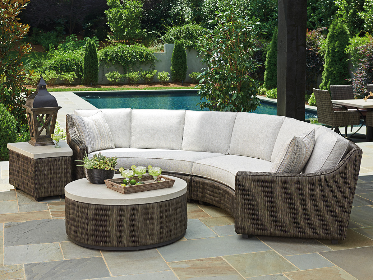 We proudly carry the Cypress Point Ocean Terrace collection by Lexington Homebrands. The collection features a sophisticated V-pattern of all-weather woven wicker including aluminum frames and a custom aged iron finish. This collection has a neutral palette and layers configurable performance fabrics to accentuate your outdoor space.